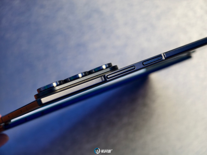 机身最右侧那截↑,相机、主板、音量/电源(侧边指纹)按键都在上面,它只比最左侧那截厚0.1mm(中间那截机身才是最厚的,4.2mm,因为它上面多了一块外屏)。