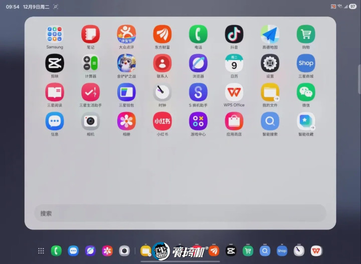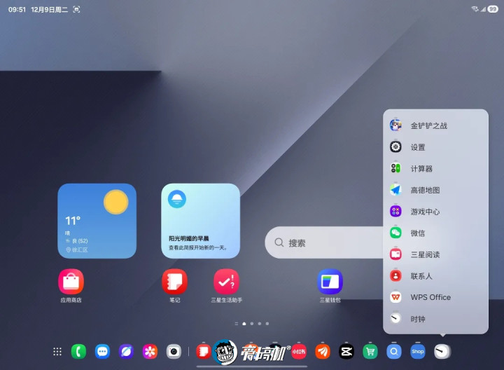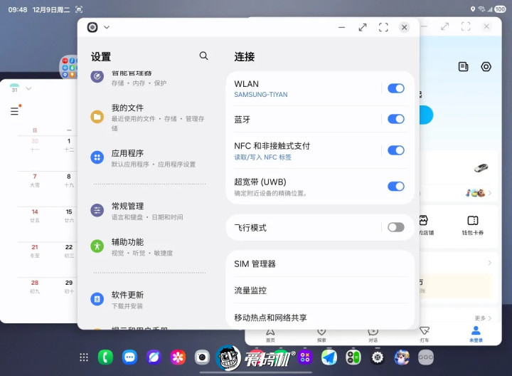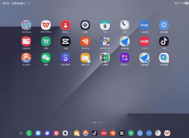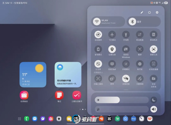DeX模式的Docker栏↓,此时每个APP顶部都有窗口控制栏,可以在窗口边缘随意改变窗口比例和大小。