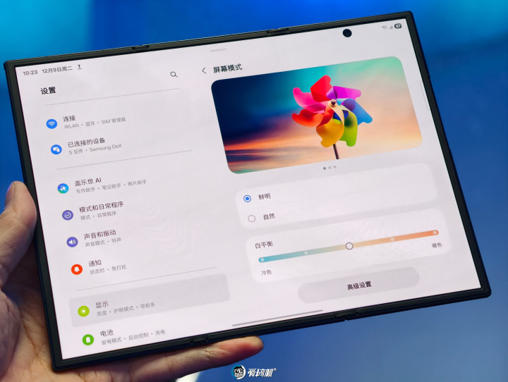 这次主要看看这块“陶瓷玻纤”后盖↓、转轴、折痕控制与屏幕大小,以及简单体验一下首个“自体”DeX模式(它是首台可以用自己屏幕触发DeX模式的手机)。