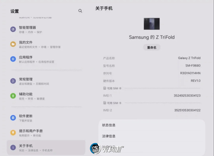 三星Galaxy Z TriFold的结构很容易认,机身是三截棍↓: